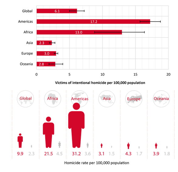 بر اساس این گزارش در سال 2017 میانگین جهانی وقوع قتل های خانوادگی در دنیا 6.1 قتل به ازای هر 100 هزار نفر جمعیت بوده است.