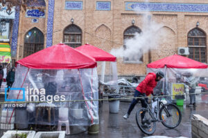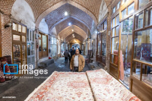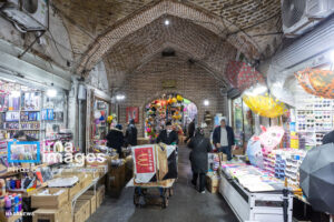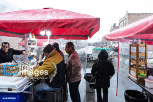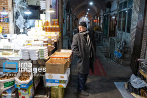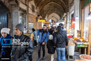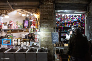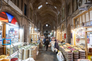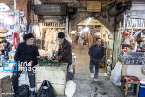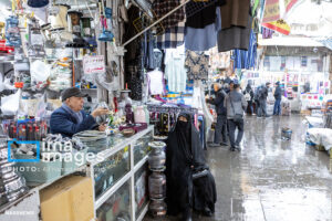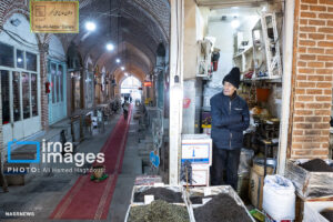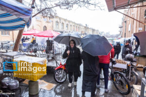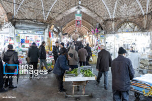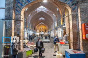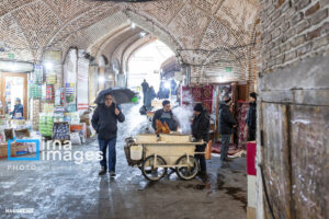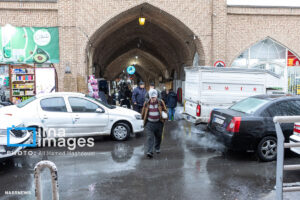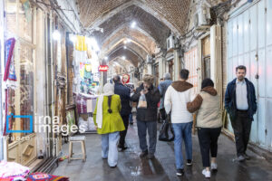 همزمان با بارش باران رحمت الهی زندگی در بازار تبریز در جریان است. مردم از سراسر محلات شهر برای خرید و تهیه مایحتاج مورد نیاز خود به بازار مراجعه میکنند.